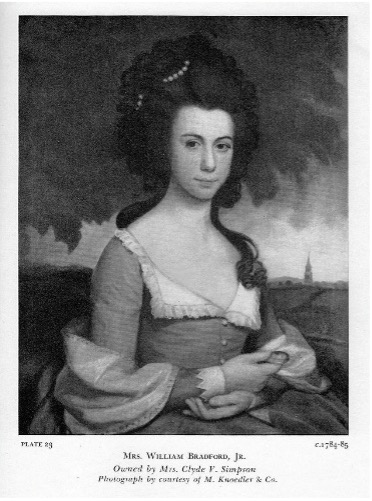 to marry William Bradford, Esq. in 1784 at the age of 19. Bradford received multiple degrees at Princeton where his classmates included his close friend James Madison as well as Aaron Burr. He volunteered as a Private in the Continental Army, and quickly ascended to the rank of Colonel and aide to General Washington. He later became PA State Attorney General, Justice of the State Supreme Court of PA, and the second US Attorney General. William Bradford, only 39 years of age and under the care of his wife’s famous cousin Dr. Benjamin Rush died of yellow fever in the sweltering Philadelphia summer of 1795. Susan, now a 30 year old widow, never remarried and shared a home with her parents until their deaths. Susan subsequently was instrumental in collecting and preserving documents cementing her father’s legacy.