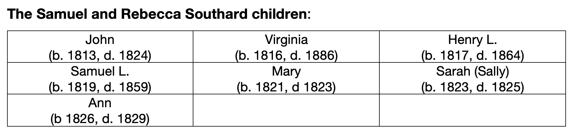 Those years as a member of the Presidential Cabinet were extremely difficult ones on the Southard family personally. Four of their seven children died during those 6 years. Rebecca was driven into deep depression, forcing even more responsibilities onto Samuel.